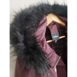 Express Jacket Women's Small Wine Faux Fur Hood Removable Zebra Liner N…