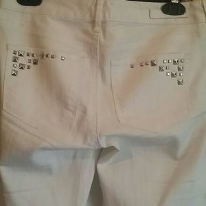 White Deming with silver deco on front pockets and rear. Never worn.