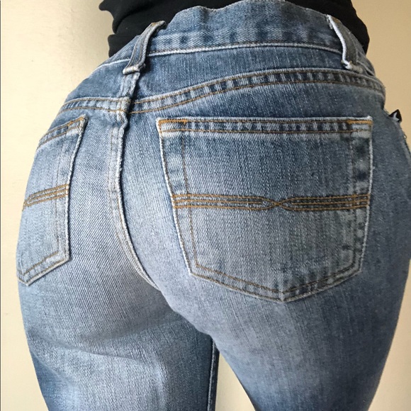 These jeans are so comfortable and fit low on the waist. The leg is relaxed and bootcut. The jeans are without flaws but have a slight worn look.