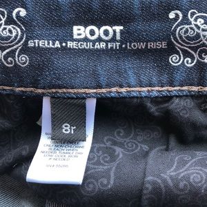 Express Stella boot cut dark wash jeans. Low rise, size 8 regular. Minimal wear!