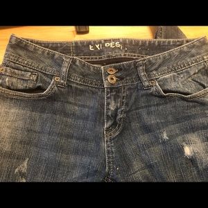 Distressed jeans from Express. Sort of a boyfriend cut full length jean. Boot cut. Super comfortable!!!