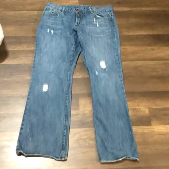 Express Jeans, distressed, flared leg, medium rise, great condition, never worn. Tag is ripped off but size 10.