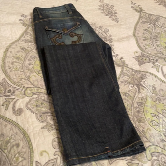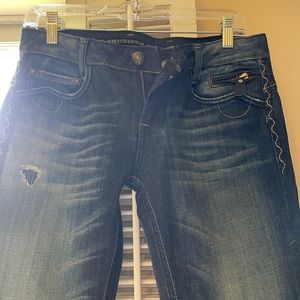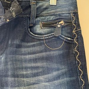 Rerock for Express Jeans. They are are boot cut but also look flared. These are like new Gently Worn.