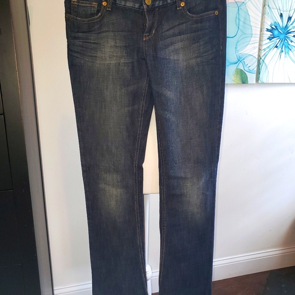 Express jeans, barely bootcut, dark denim, slight stretch, size 8, excellent condition