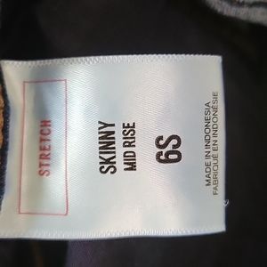 Express size 6 short jeans mid rise skinny. Definitely don't fit as tight as an American Eagle or Levi skinny more like straight leg to me. I'm 5'3 and the short lays perfect just for reverence.