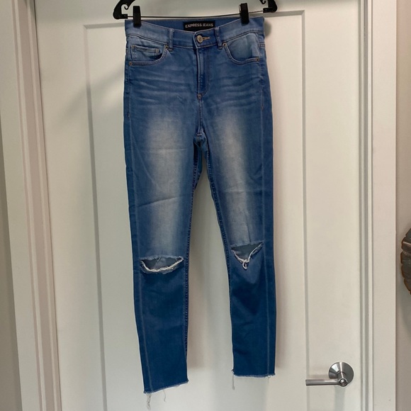 High rise, light wash and distressed Express jeans