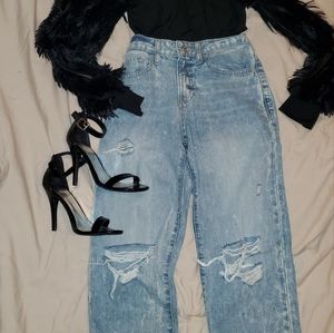 super cute distressed midrise boyfriend jeans. I'm obsessed with this style.