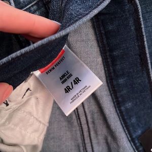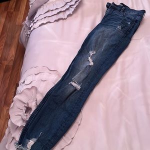 Express blue jeans size 4r with rips skinny leg ankle high rise