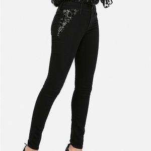MID RISE BLACK SEQUIN STRETCH