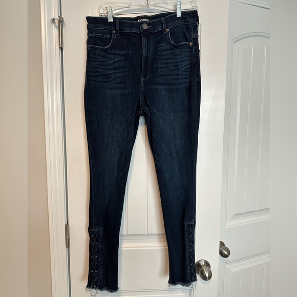 NWOT. Express stretchy jeans with lace up design on both ankles.
