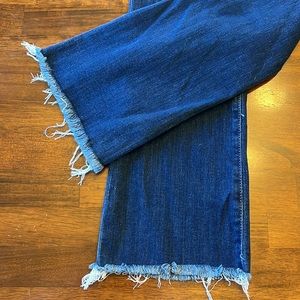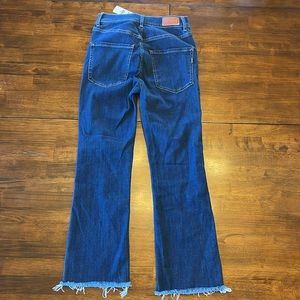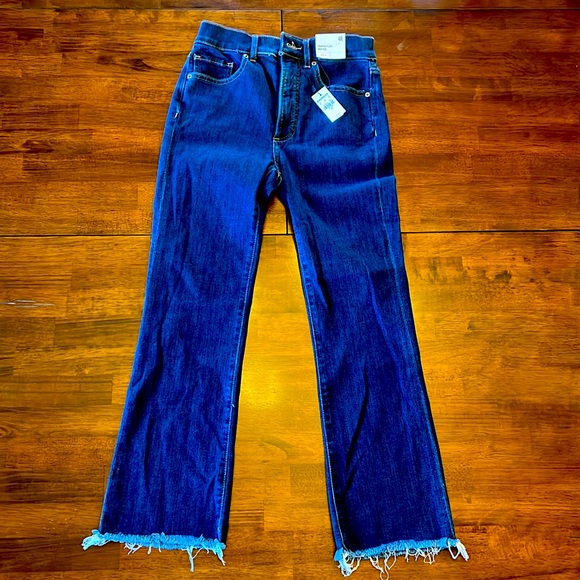 NWT- stretch cropped flare high rise dark jeans. Cut off bottoms - came that way! Hip stretch jeans!