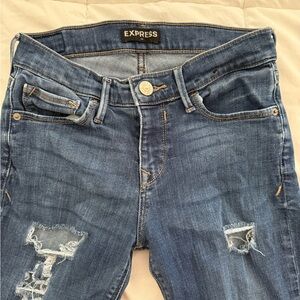 Stylish women's distressed jeans in a classic blue color. Perfect for casual outings and everyday wear. Women’s Express jeans Size 0