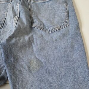 see photos, these jeans are in great shape, I did notice a yellowish colored stain on the right rear under pocket. I have not tried to get it out, so it may or may not come out.