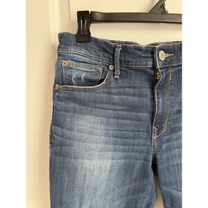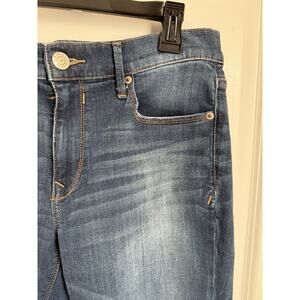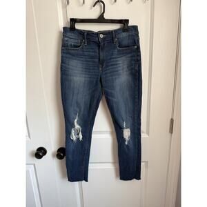 The product is a pair of Express Jeans Ankle Leggings in size 10. These leggings are designed for women and feature a classic denim color with a waist size of 33 inches. The style is described as jean leggings, offering a comfortable fit and a trendy ankle length hemline. Perfect for casual wear, these leggings can be dressed up or down to suit any occasion.