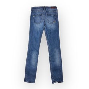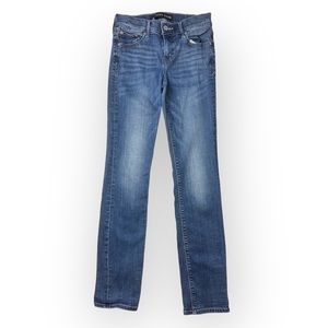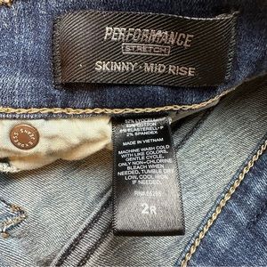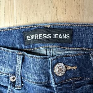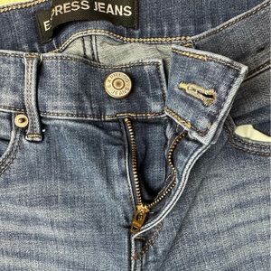 Express Jeans Blue Denim Distress Whiskers Performance Stretch Skinny Mid Rise 2