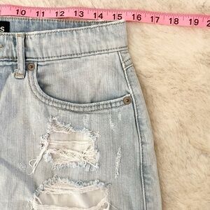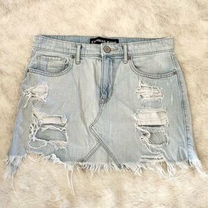 Express Jeans Light Wash Distressed Fray Denim Mini Skirt Size 6