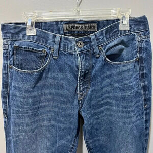 Express Jeans Mens Blue Rocco Slim Fit Straight Leg Denim Jeans 32 x 34 Whisker