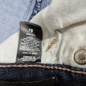 Materials: 67% cotton, 31% polyester, 2% spandex (per tag); stretch denim for a fitted legging-style feel.