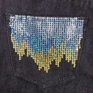 Blue & Gold Sparkly Sequins on back Pockets & on Coin Pocket