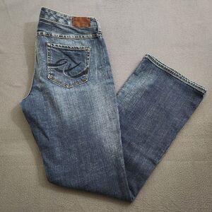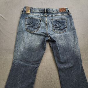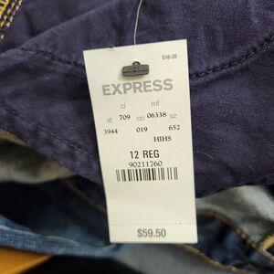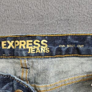 These Express Jeans Women 12 Eva Curvy Mid Rise Boot Cut Jeans are brand new with tags. They feature a zip and button closure, denim fabric with a mid rise and a 32-inch inseam. The bootcut style, 5-pocket design, and stretch material make them comfortable and versatile for all seasons. The classic blue color and solid pattern add a timeless touch to the wardrobe, while the branded accents give a stylish flair. Perfect for the modern woman looking for a blend of fashion and function.