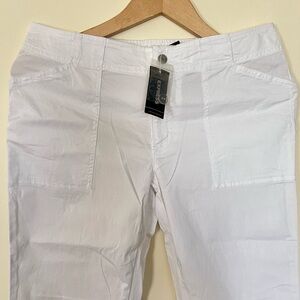 Express Women Mid Rise Hyper Stretch Crossover Pocket Slip White Flare Pants 7/8 Cotton