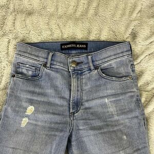 Express Jeans Women’s 0R High Rise Jegging Skinny Distressed Light Wash Denim