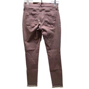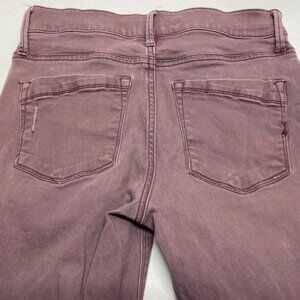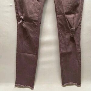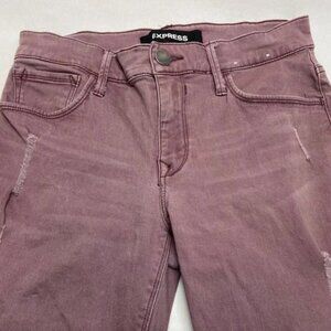 Express Jeans Women's 0R Mid-Rise Ankle Leggings Dusty Purple Raw Hem Distressed