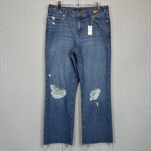 Express Jeans Womens 10L Blue 90s Ankle Boot Mid Rise Raw Hem Distressed Denim