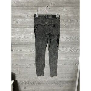 Express Jeans Women's 2R Ankle Legging High Rise Embroidered Stretch Gray EUC