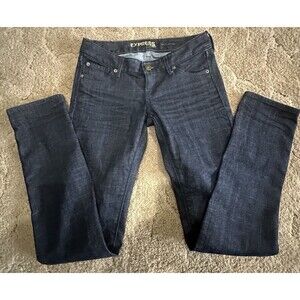 The Express Jeans Women's 2R Skinny Zelda Slim Fit Cotton Spandex Stretch with a 33" inseam is a stylish and versatile pair of jeans. These jeans feature a low-rise and a slim fit, perfect for a modern and on-trend look. Made with a comfortable denim fabric that includes spandex for added stretch, they are perfect for everyday wear in the winter, fall, or spring seasons. The dark wash and solid pattern make them easy to pair with any outfit, while the zip closure and 5-pocket design add practicality to the design. Perfect for those who enjoy a city-inspired or 90s-themed fashion aesthetic.
