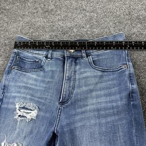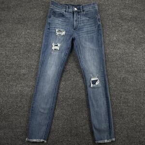 Express Jeans Womens 4R Blue Skinny High Rise Denim Perfect Distressed Raw Hem