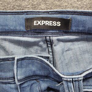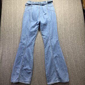 Express Jeans Womens 8 Long Light Blue Bell Flare Super High Rise Belted Denim