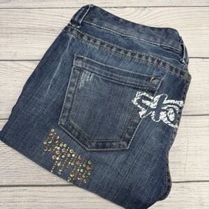 Express Jeans Womens 8 Stella Skinny STARLET Fashion Graphic Jeweled Graffiti
