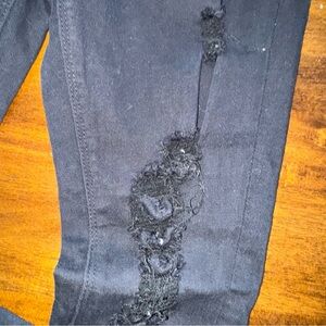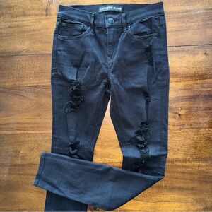 Express Jeans Womens Black Distressed Mid Rise Legging Stretch Jeans, Size 0 in good preowned condition