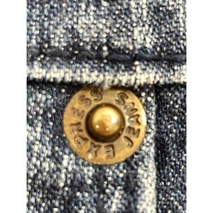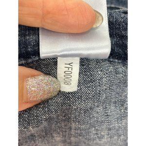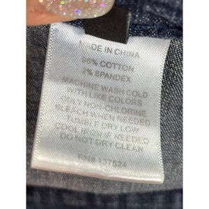 0620A- Express Jeans Women’s Blue Denim Shorts Size 6, 4-pocket design, 3.5” zip & button closure. Brown round shiny button with express jeans logo in gold letters. Stretchy. 30 inch waist, 34 inches around hips, 4 inch inseam., 1 inch cuff. 10 inch rise, mid rise Made in China. Medium blue wash. Brown leather square logo patch at back of waistband, one and three-quarter inch belt loops. Machine wash cold with Like colors. Nonchlorine bleach. Tumble dry low. Cool iron. No dry clean. YF0008. Gently preowned. Very good condition..