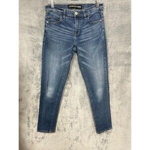 Express Jeans Womens Girlfriend Fit Blue Denim Jeans Size 0 Distressed Wash Cotton Blend