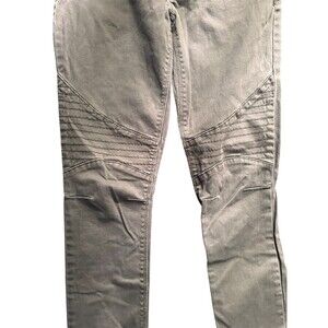 Stylish Express Jeans legging pants in a unique green khaki shade! Size 4 with a 14.5 waist (approx. 29 when doubled) and 29 inseam, these mid-rise pants feature moto-style stitching on the thighs for an edgy athleisure and boho vibe. Perfect for casual wear, festivals, or pairing with boots and a flowy top! Pre-owned in good condition, with stretch fabric for a comfy fit.