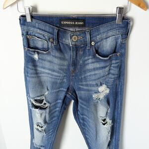 Express Jeans Women's Legging Medium Wash Blue Mid Rise Distressed Jeans Size 0R