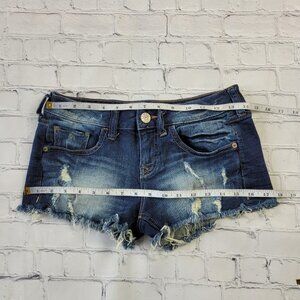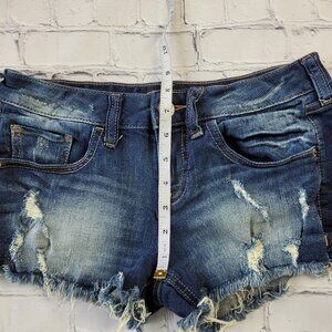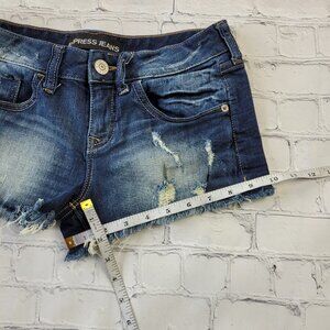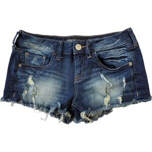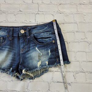 Express Jeans woman’s dark blue cut off distressed jean shorts size 0
