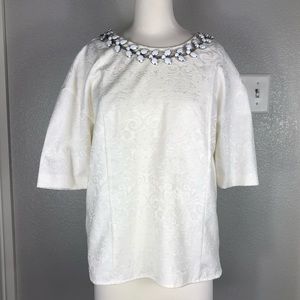 Express Jeweled Collar Jacquard Top M BNWT Holiday