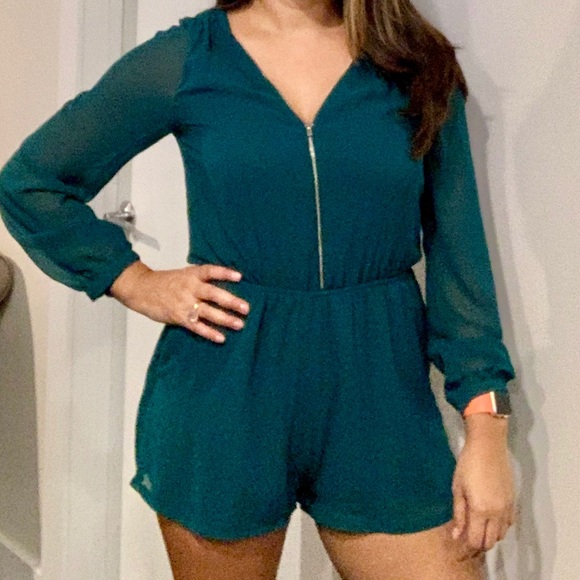 Emerald green, shorts jumper. It has long sleeves, very pretty for a night out or to use during the day.