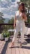 Ankle length pocketed jumper with a satiny top. Bust 20” Rise 13.5” and inseam 28.5”. Wore once for these pics/ video. Zip closure.