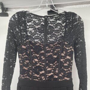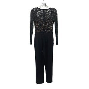 Express Jumpsuit Lace Top Square Neck Tapered Leg Black/Nude Size 2 Pockets