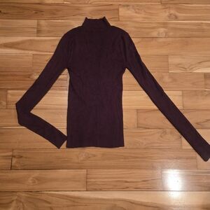 Elegant deep purple top with ribbed texture. Key hole opening with a stylish high neckline. Very stretchy!