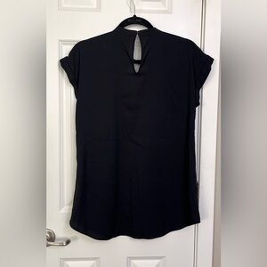 Chic black blouse with keyhole detail. Short sleeves and relaxed fit. Perfect for versatile styling. This item was worn once.