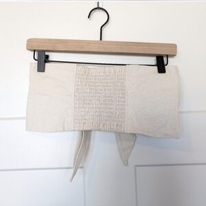 Express knot top with elastic back. Linen rayon blend.
