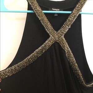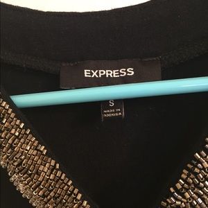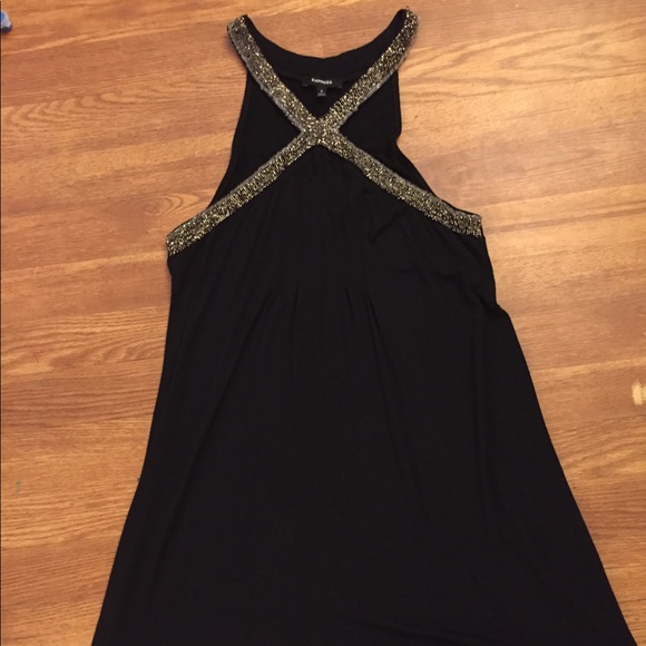 Express little black dress in size small. Gorgeous beading around the neckline and even prettier on- simple but elegant. Perfect for any night out and especially for the holidays. I am 5’4” and it is a few inches above the knee, dress measures roughly 35”. EUC, only worn once for an event.
