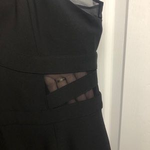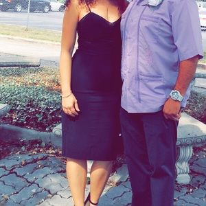 Beautiful black zippered below the knee dress with spaghetti straps. Very flattering. Worn once to a wedding!