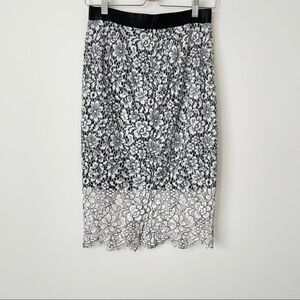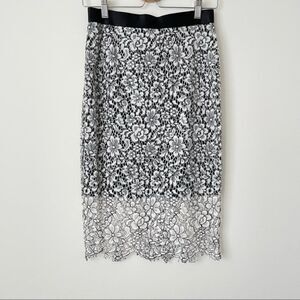 Express Lace Floral Pencil Slit Midi Work Office Skirt Black/ White 4 NEW
