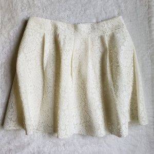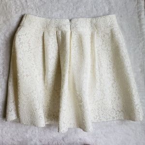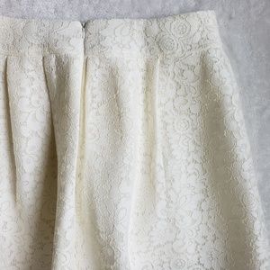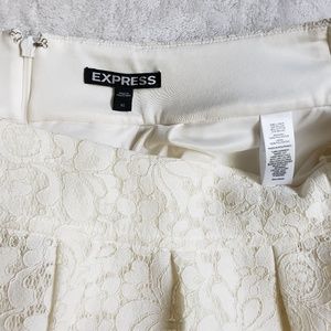 Never worn. Ivory or cream lace pleated skirt from Express. Perfect for a formal event, work, or for a fun night out. Zipper and hook back closure. Size 12. Smoke free and immaculate home. Bundle to save. Don't hesitate to reach out if you have any questions.